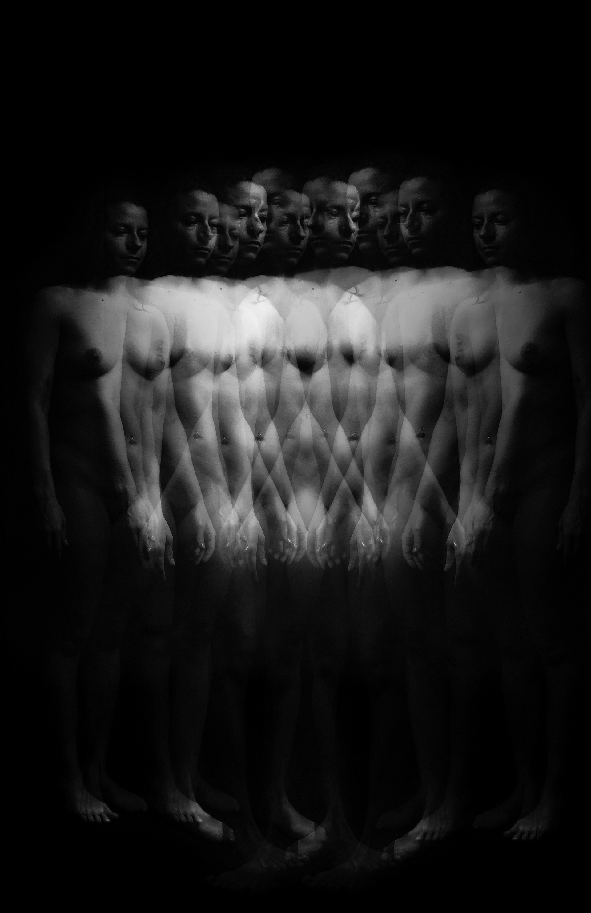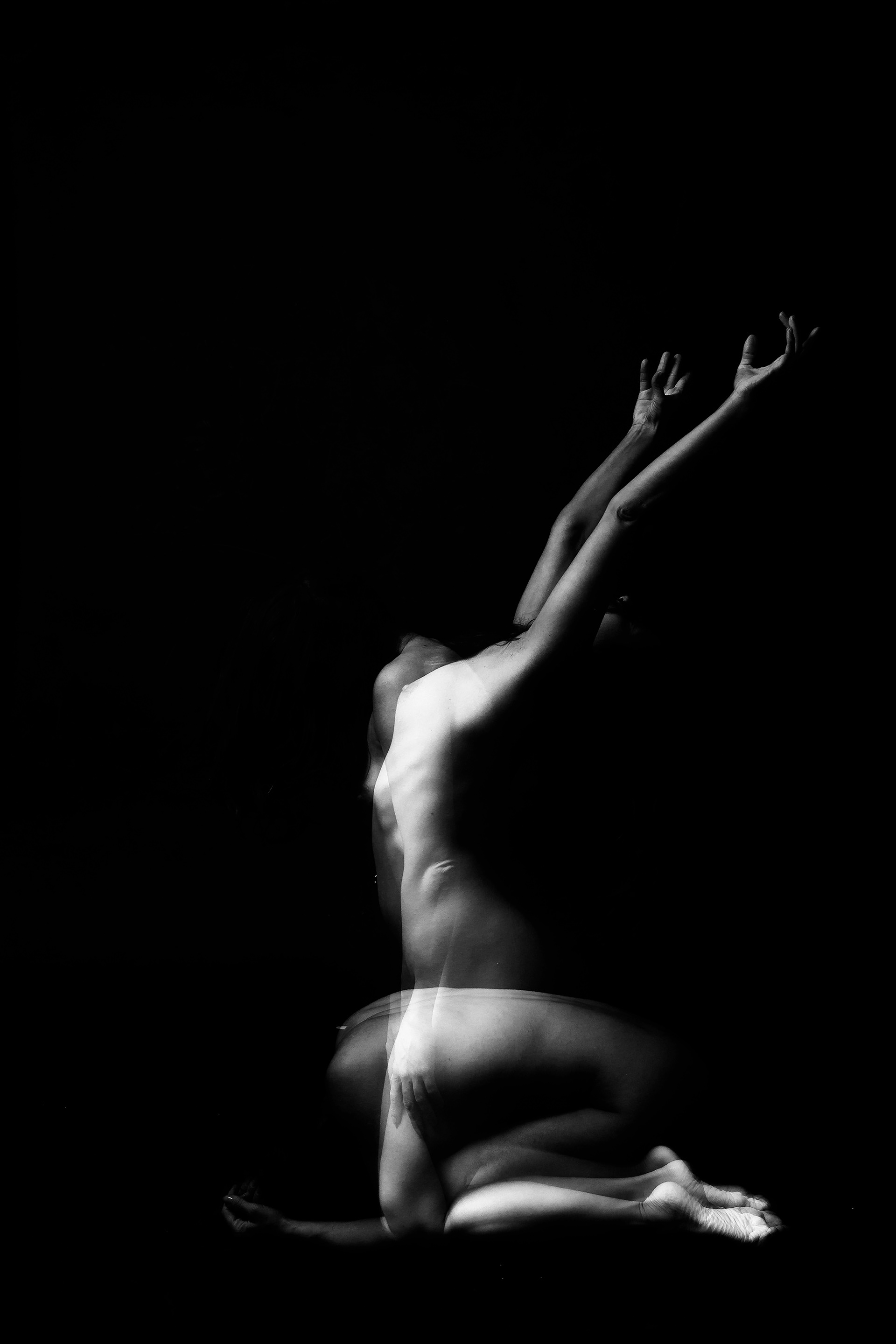 Le forme rannicchiate e le braccia che avvolgono non sono gesti di debolezza, ma atti di auto-conservazione e profonda introspezione. È un ritorno al centro, un momento di quiete prima del movimento. Attraverso l'uso di doppie esposizioni e luci drammatiche, cerco di rendere visibile l'invisibile: le sfaccettature dell'identità, l'anelito verso l'alto e la cruda bellezza della vulnerabilità umana.